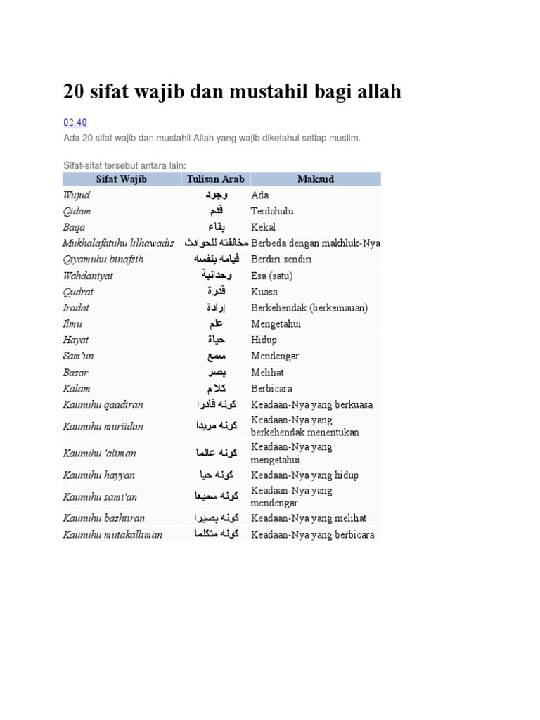 Tulisan Arab Tabel 20 Sifat Wajib Allah Dan Artinya : Sifat Wajib Bagi Allah Dan Dalilnya Pdf - Juragan Soal / Melalui tauhid, kita belajar bagaimana cara beriman kepada allah.